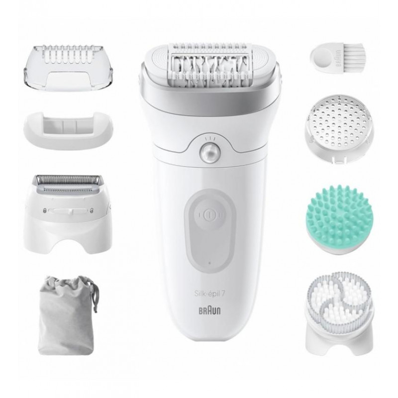 - Accesorios Completos: Incluye un cabezal de masaje para mayor confort, un cepillo exfoliante para preparar la piel, un accesorio de afeitado y un accesorio de recortador para versatilidad en tu rutina de belleza.
