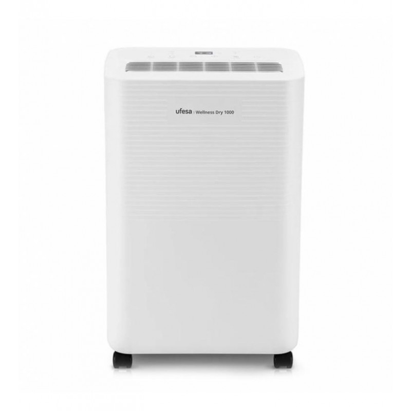 El deshumidificador Ufesa Wellness Dry 1000 es la solución perfecta para mantener un ambiente óptimo en tu hogar, eliminando el exceso de humedad de forma eficiente y silenciosa. Diseñado para estancias de hasta 40m², este potente deshumidificador extrae hasta 10 litros de humedad cada 24 horas, contribuyendo a prevenir problemas como moho, condensación y olores desagradables.