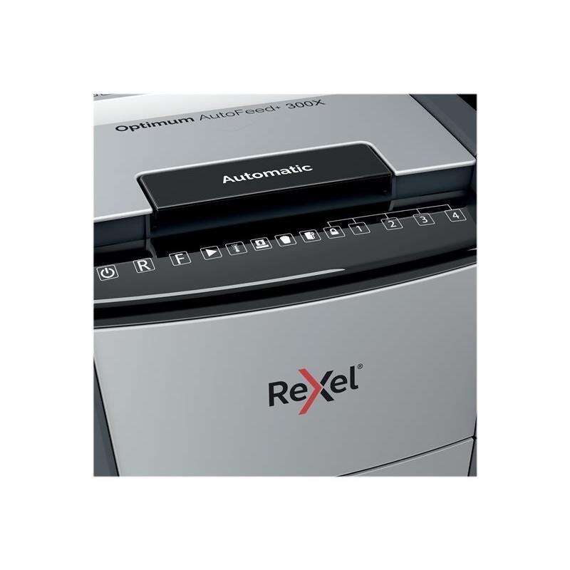 La destructora Rexel Optimum AutoFeed+ 300X es una solución eficiente y segura para la destrucción de documentos en la oficina. Esta destructora de corte en partículas tritura automáticamente hasta 300 hojas de papel A4 (80 gramos) a la vez, convirtiéndolas en pequeñas partículas P-4 de 4x25 mm, lo que garantiza la confidencialidad de la información.