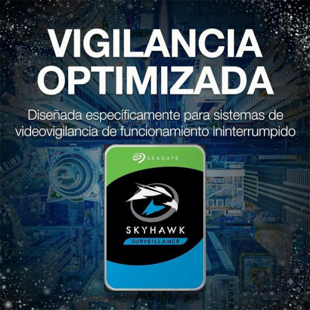 El disco duro Seagate SkyHawk de 4TB está especialmente diseñado para sistemas de vigilancia, ofreciendo un rendimiento excepcional y una gran fiabilidad para proteger tus datos de forma continua.