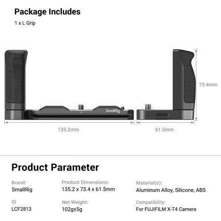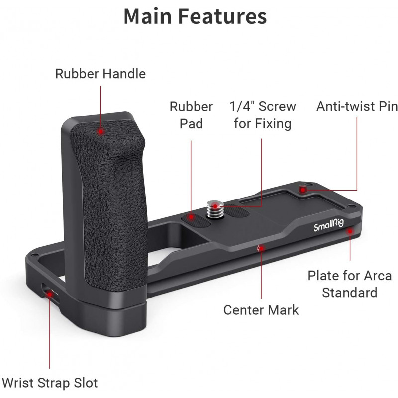 Compatibilidad: SMALLRIG Hand Grip LCF2813 está diseñado para cámara FUJIFILM X-T4. Se compone de un agarre lateral de silicona y una placa de liberación rápida para Arca Swiss