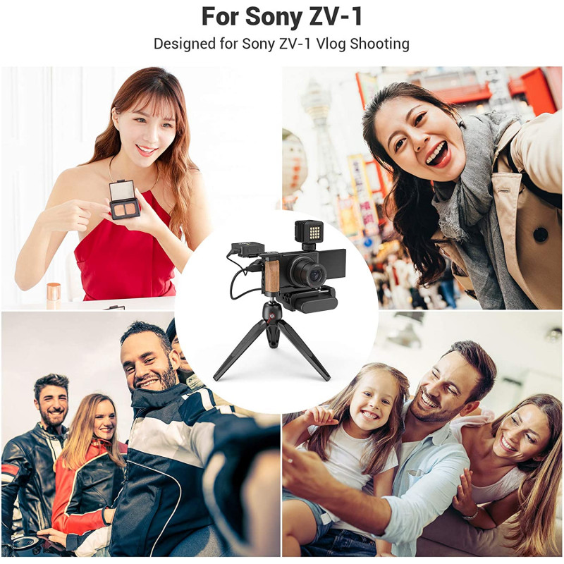 1. Mango de madera en forma de L para cámara Sony ZV1.