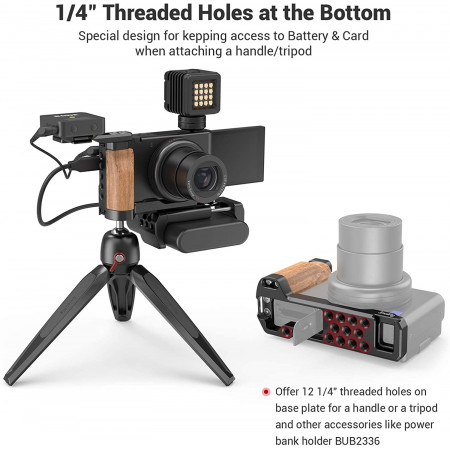 Hilos de 1/4: Tiene dos hilos de 1/4"-20 en la parte superior para un montaje de zapata fría SMALLRIG 2881 adicional, para que pueda conectar la luz y el micrófono al mismo tiempo. Hace que el trabajo de vlogger sea mucho más fácil