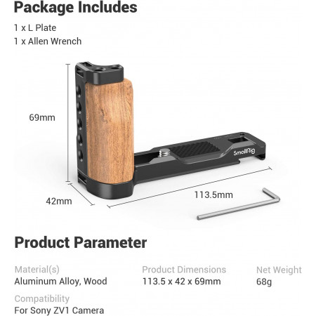 Compatibilidad: SMALLRIG L Plate 2936 es un diseño modular para la cámara Sony ZV1. Se fija a la parte inferior de la cámara con un tornillo de 1/4'' - 20