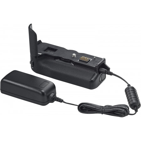 El agarre tiene funcionalidad de carga de batería y es capaz de cargar completamente dos baterías en dos horas.