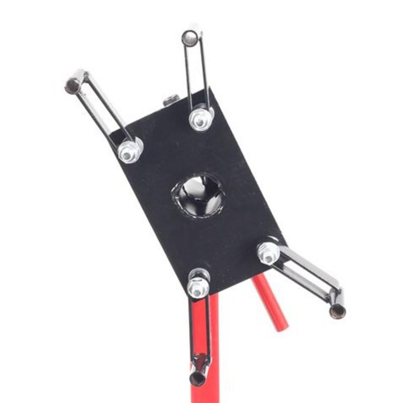 Su característica principal es el cabezal giratorio de 360 grados, que permite un acceso total a todas las partes del motor, facilitando tareas de montaje, desmontaje o mantenimiento desde cualquier ángulo sin esfuerzo. Los brazos de sujeción son totalmente ajustables, adaptándose perfectamente a las dimensiones y puntos de anclaje de cada pieza.
