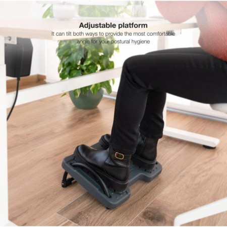 EAN 8433281013025El reposapiés ergonómico TooQ TQFR0601-G está diseñado para proporcionarte la máxima comodidad mientras trabajas o estudias, ya sea en casa o en la oficina. Este accesorio te permite mantener una postura correcta, reduciendo la tensión en la espalda, las piernas y los pies.