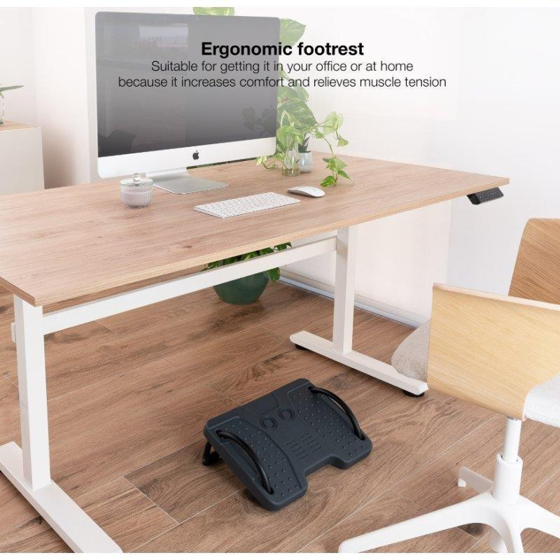 Su diseño ajustable te permite personalizar la inclinación para encontrar la posición más cómoda y ergonómica. La base antideslizante asegura que el reposapiés se mantenga firme en su lugar, proporcionando estabilidad y seguridad durante su uso. Fabricado con materiales de alta calidad, este reposapiés es resistente y duradero.