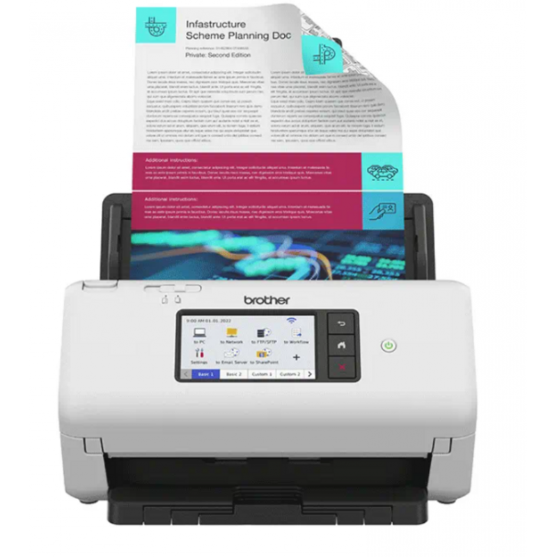 El escáner documental Brother ADS-4700W es una solución potente y versátil para la digitalización de documentos en entornos de oficina. Con su capacidad de escaneo dúplex automático, digitaliza ambas caras de un documento de una sola pasada, ahorrando tiempo y mejorando la eficiencia.
