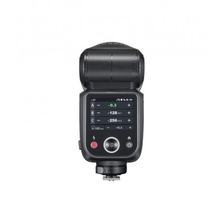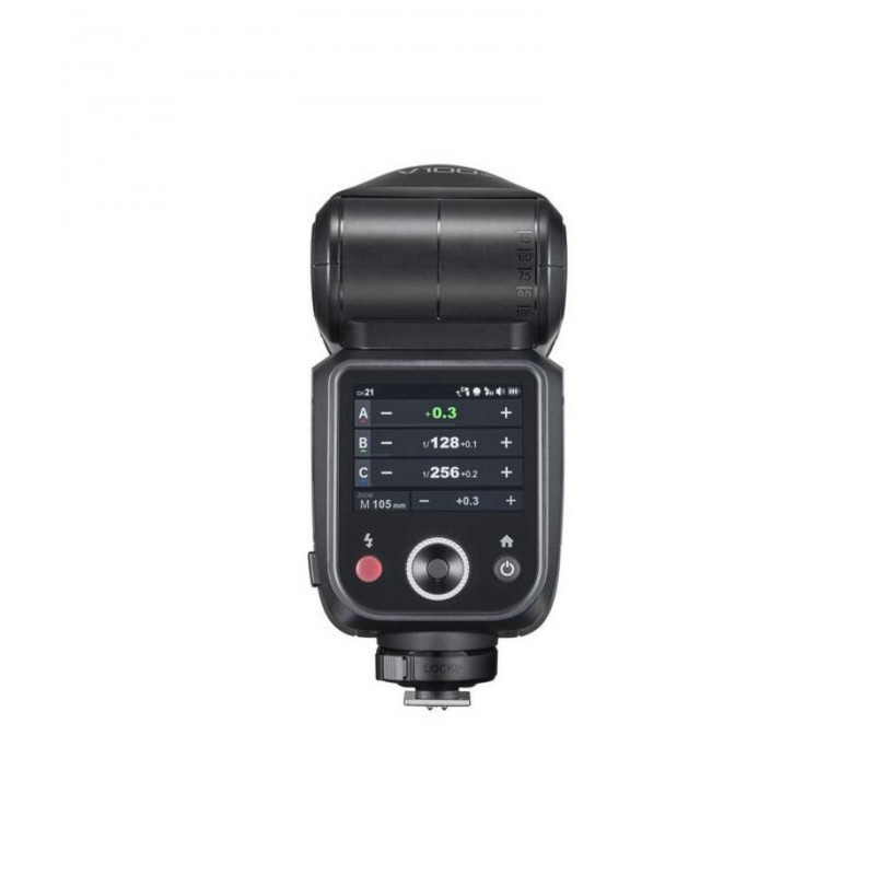 - Batería de iones de litio extraíble de 2980 mAh (hasta 70 flashes a máxima potencia).