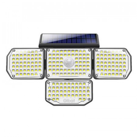Ilumina tus espacios exteriores con eficiencia y seguridad gracias al Foco Solar Cuádruple con Sensor Elbat de 430 Lúmenes. Este innovador sistema de iluminación solar está diseñado para ofrecer una potente luz fría de 6500K, ideal para jardines, patios, entradas o garajes, asegurando una visibilidad óptima durante la noche sin incurrir en costes eléctricos.