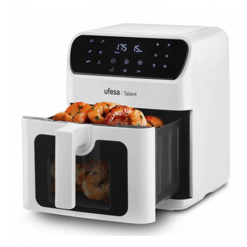 La freidora de aire Ufesa Talent White es tu aliada perfecta para transformar tus hábitos culinarios, permitiéndote disfrutar de comidas deliciosas y crujientes con hasta un 85% menos de grasa. Su diseño moderno y su potente rendimiento de 900W la convierten en una opción eficiente y estilizada para cualquier cocina.