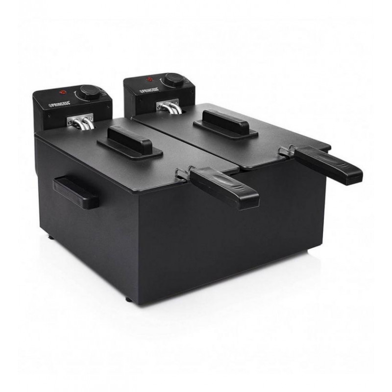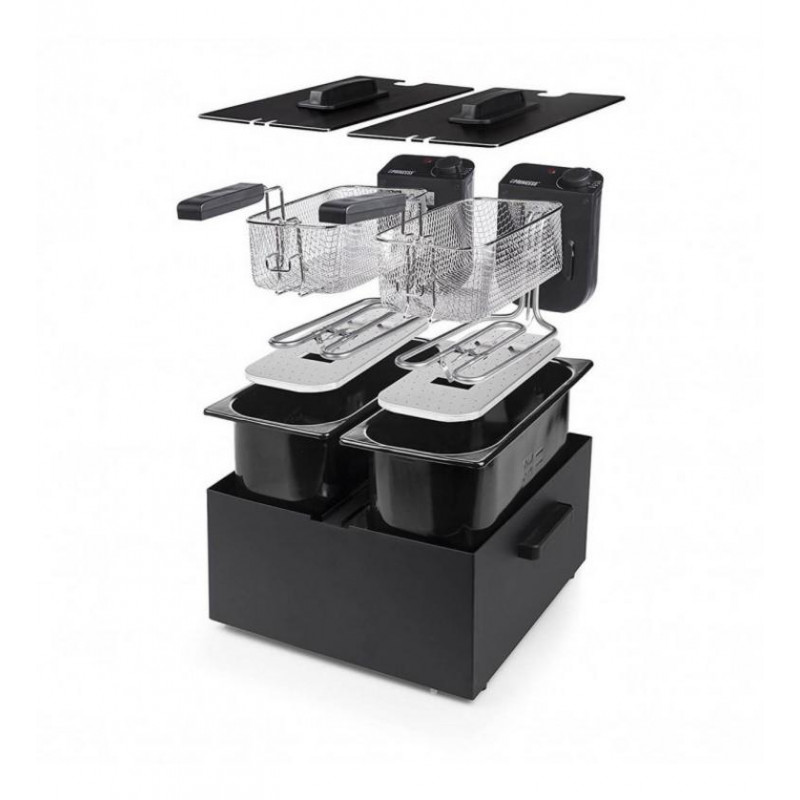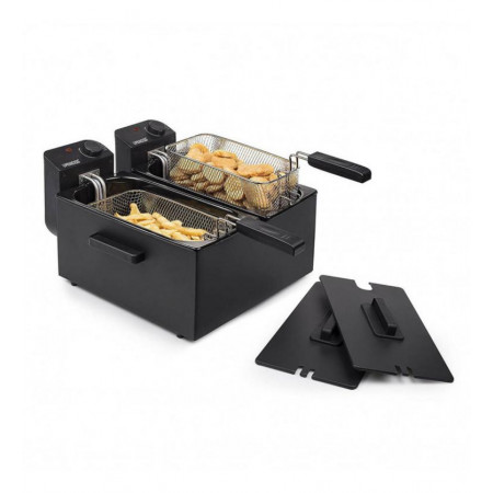 - Doble Cubeta: Dos depósitos de 3 litros cada uno para freír de forma independiente.