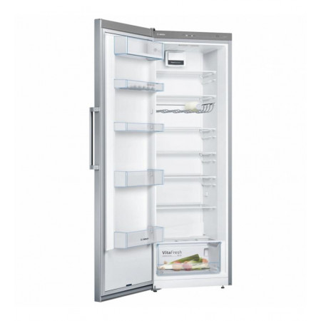 El frigorífico Bosch KSV33VLEP Clase E es la solución perfecta para quienes buscan eficiencia, gran capacidad y tecnologías avanzadas de conservación en un solo electrodoméstico. Con una generosa capacidad neta de 324 litros y un elegante acabado en acero antihuellas, este modelo de una puerta se integra a la perfección en cualquier cocina moderna, añadiendo un toque de sofisticación.