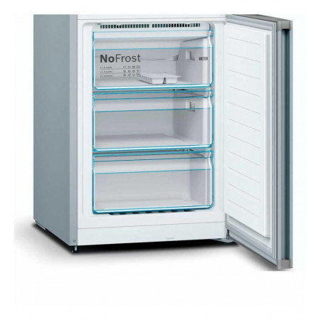 Gracias a su tecnología No Frost, olvídate de la tediosa tarea de descongelar el congelador, manteniendo siempre un ambiente óptimo y sin escarcha. Sus amplios compartimentos, con una capacidad total neta de 326 litros (237 litros en el frigorífico y 89 litros en el congelador), ofrecen espacio suficiente para todas tus compras.