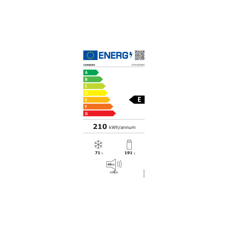 El frigorífico combi Corberó CCH1824EX combina funcionalidad y un diseño moderno en acero inoxidable para tu cocina. Este electrodoméstico de clase energética E ofrece una solución eficiente para la conservación de tus alimentos, garantizando un bajo consumo anual de 210 kWh dentro de un rango energético de A a G.