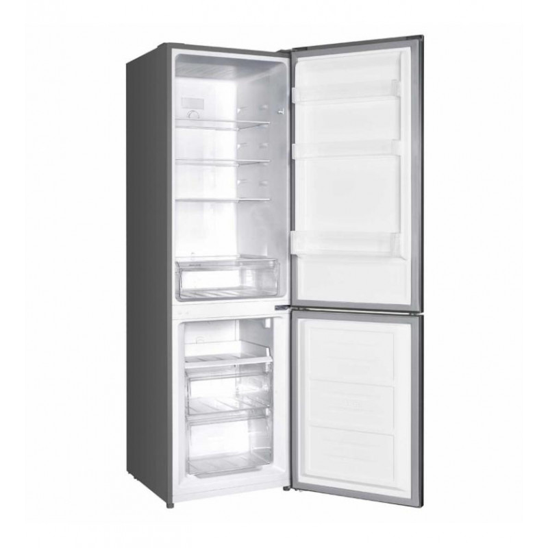 El frigorífico combi Corberó CCH18522EX combina eficiencia energética y amplias capacidades para satisfacer las necesidades de cualquier hogar moderno. Su clasificación energética Clase E asegura un consumo eléctrico moderado, con un consumo anual estimado de 250 kWh, permitiéndote ahorrar en tu factura de luz.