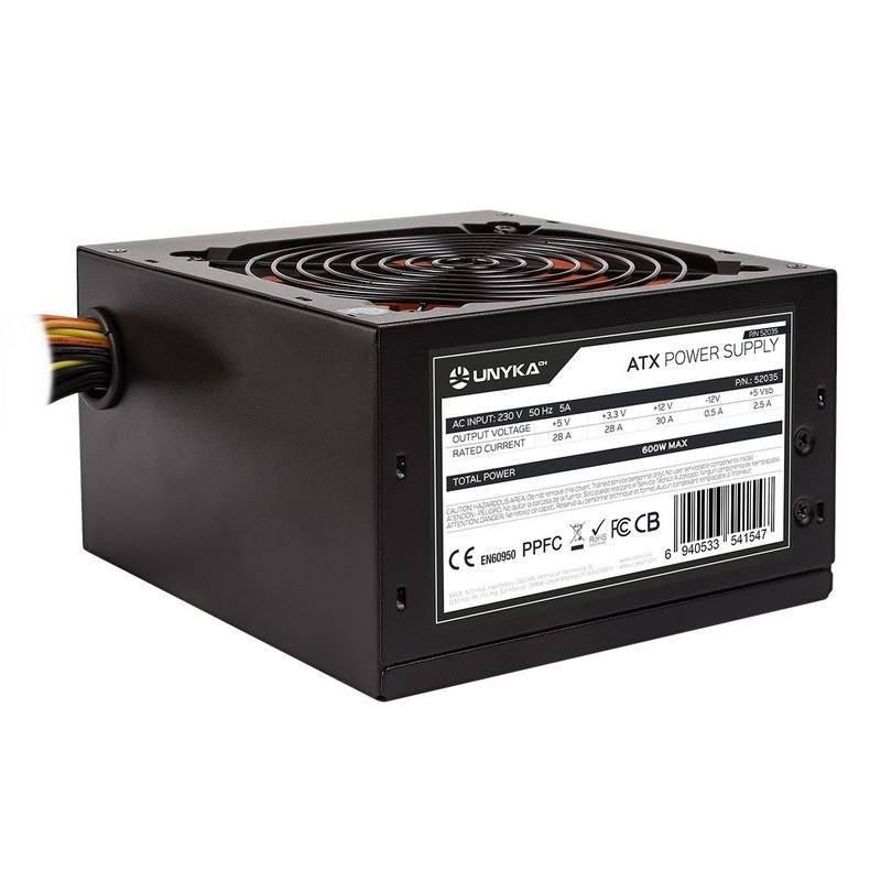 La fuente de alimentación Unykach 600W Gaming ofrece una solución eficiente y fiable para alimentar tu PC gaming. Diseñada para proporcionar la energía necesaria para componentes exigentes, esta fuente garantiza estabilidad y seguridad en cada partida.