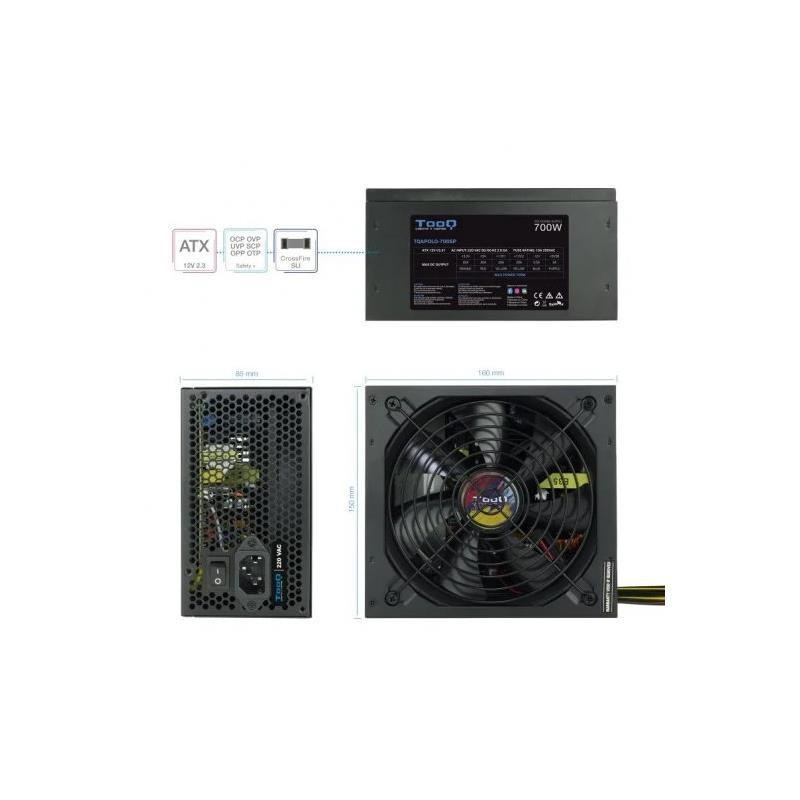 La fuente de alimentación TQAPOLO-700SP ATX 700W de TooQ te proporciona toda la potencia que necesitas para tu equipo. Diseñada con PFC Activo, garantiza un rendimiento eficiente y estable.