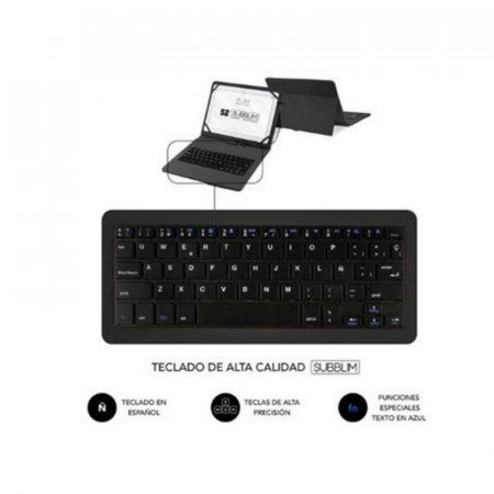 Eleva tu experiencia con la tablet a un nuevo nivel de productividad y protección con el teclado con funda universal Subblim. Diseñado para tablets de hasta 11 pulgadas, este accesorio 2 en 1 combina una robusta funda protectora con un teclado integrado, transformando tu dispositivo en una herramienta de trabajo o estudio mucho más eficiente.