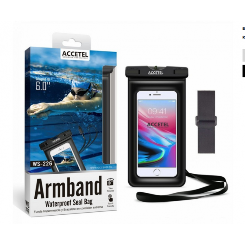 La Funda Impermeable y Brazalete ACCETEL WS-226BK es el accesorio perfecto para llevar tu smartphone de hasta 6.7 pulgadas de forma segura durante tus actividades al aire libre o sesiones deportivas. Diseñada para proteger tu dispositivo del agua, el sudor y la suciedad, esta funda te permite concentrarte en tus entrenamientos sin preocupaciones.