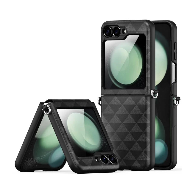 - Protección de Bisagra Integrada: Un diseño inteligente que cubre y protege la delicada bisagra del Galaxy Z Flip6 contra impactos, polvo y suciedad, asegurando una vida útil prolongada.