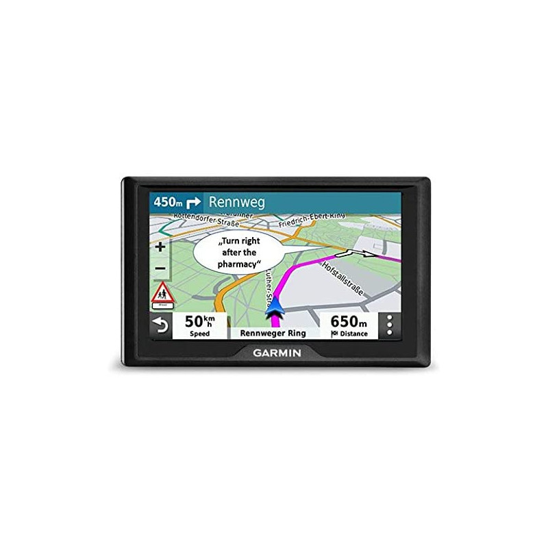 Muestra aquello que se encuentra más adelante durante tu ruta como los radares, lugares para repostar combustible, restauración y ciudades.