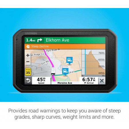 Contiene advertencias en carretera para tu seguridad como pendientes, curvas cerradas, límites de peso y más. Además, observa en detalle aproximaciones de pendientes a lo largo de la ruta.