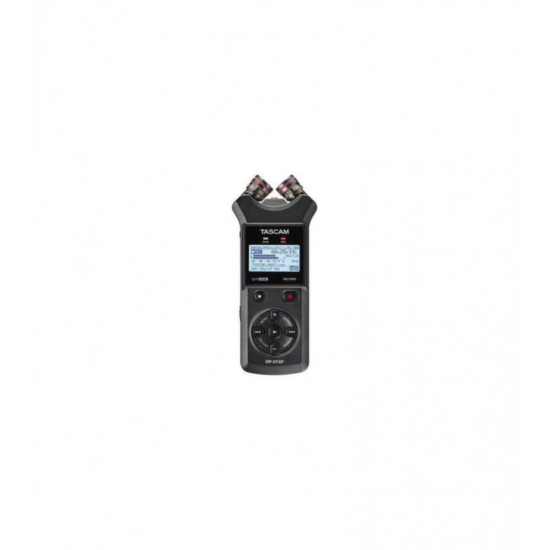 La grabadora portátil Tascam DR-07X es perfecta para grabar voz, efectos de sonido y música en vivo. Captura dos pistas de audio a 32 bits de coma flotante y alta resolución, sin necesidad de micrófonos externos. Sus micrófonos de condensador cardioide integrados ajustables se pueden configurar en A/B o X/Y para obtener una imagen estéreo amplia de la fuente.