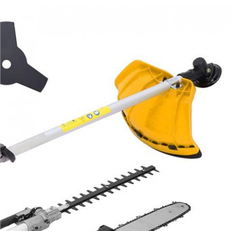 - Diseño 4 en 1: Integra las funciones de desbrozadora de hilo, desbrozadora de cuchilla, podadora de altura y cortasetos, ofreciendo una solución completa para todo tipo de vegetación.