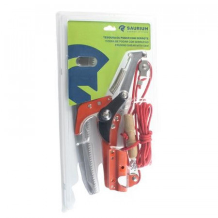 Optimiza el mantenimiento de tu jardín con la Tijera de Podar y Serrucho Extensible de Saurium, una herramienta robusta y versátil diseñada para simplificar las tareas de poda en alturas. Este práctico equipo te permite alcanzar ramas elevadas sin la necesidad de utilizar escaleras, garantizando mayor seguridad y eficiencia en cada corte.