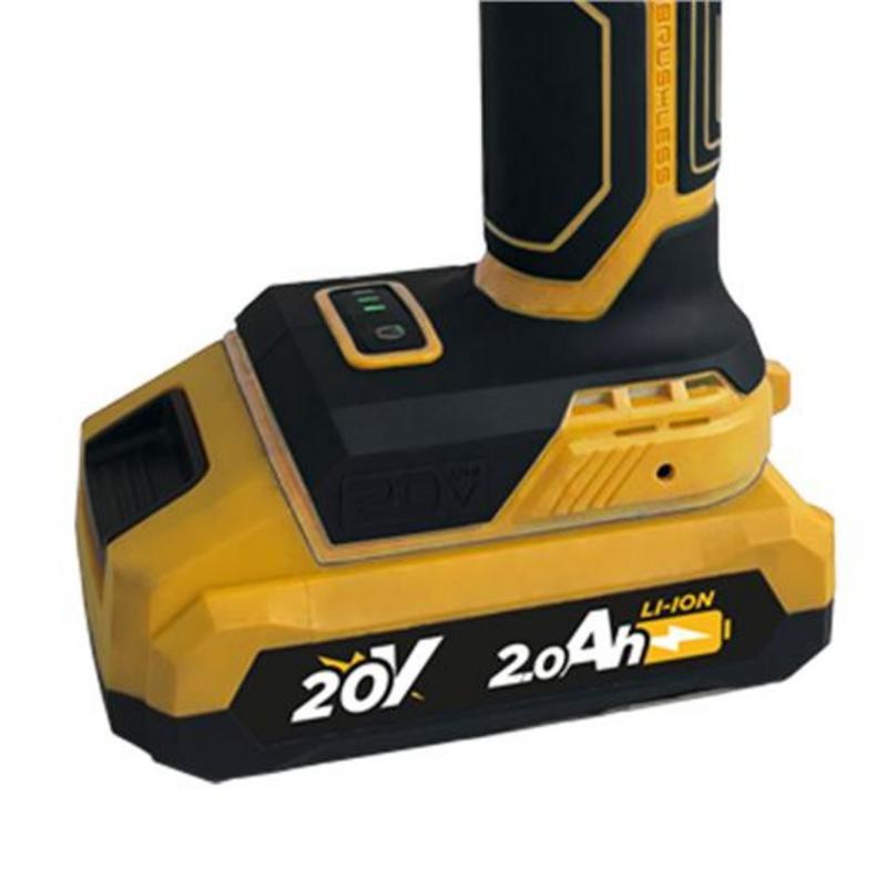 - Batería de larga duración: Incluye una batería de litio de 20V y 2.0 Ah, que proporciona una autonomía suficiente para extensas sesiones de trabajo, con un tiempo de carga rápida de aproximadamente 1.5 a 2 horas.