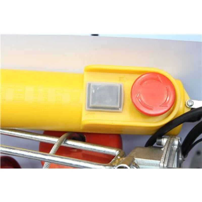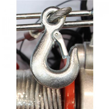 Equipado con un robusto motor de 480W, este polipasto garantiza un rendimiento constante. Su cable de acero de 12.5 metros de longitud y 3 mm de diámetro, junto con su gancho de seguridad, asegura una sujeción firme y duradera.