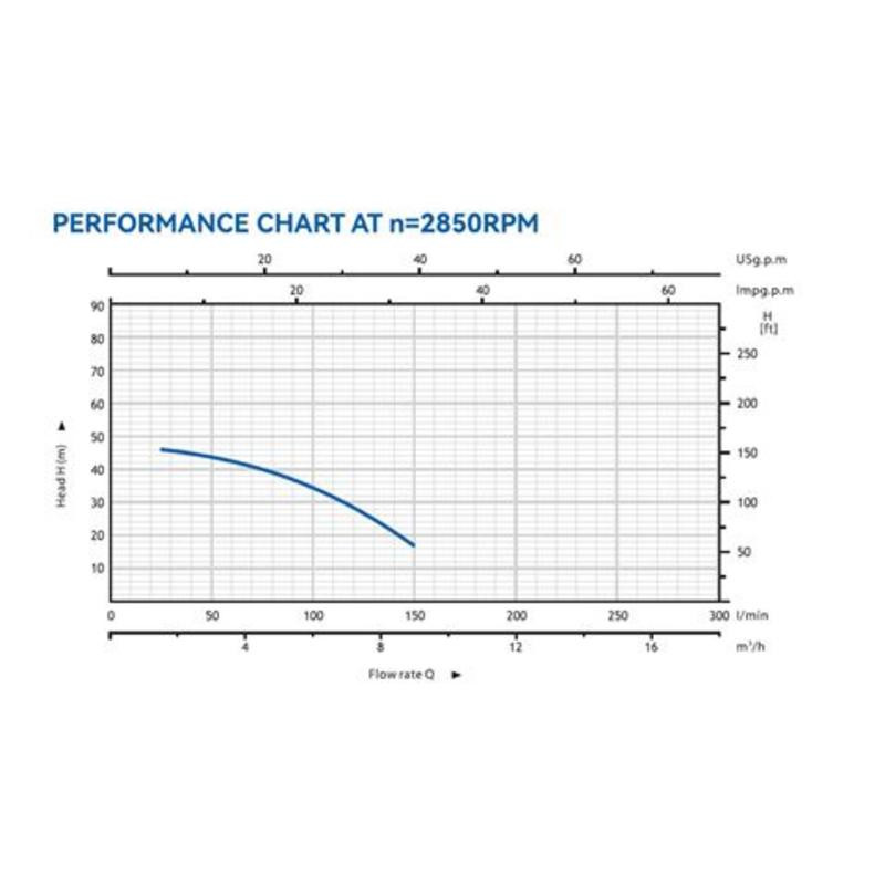 Su motor de inducción bipolar de 1.5 HP (1.1 kW) opera a 2850 r.p.m. y cuenta con aislamiento Clase B y protección IP44, lo que garantiza un servicio continuo y seguro. Además, incorpora un protector térmico para prevenir sobrecargas, funcionando con una alimentación monofásica estándar de 220V/50Hz.
