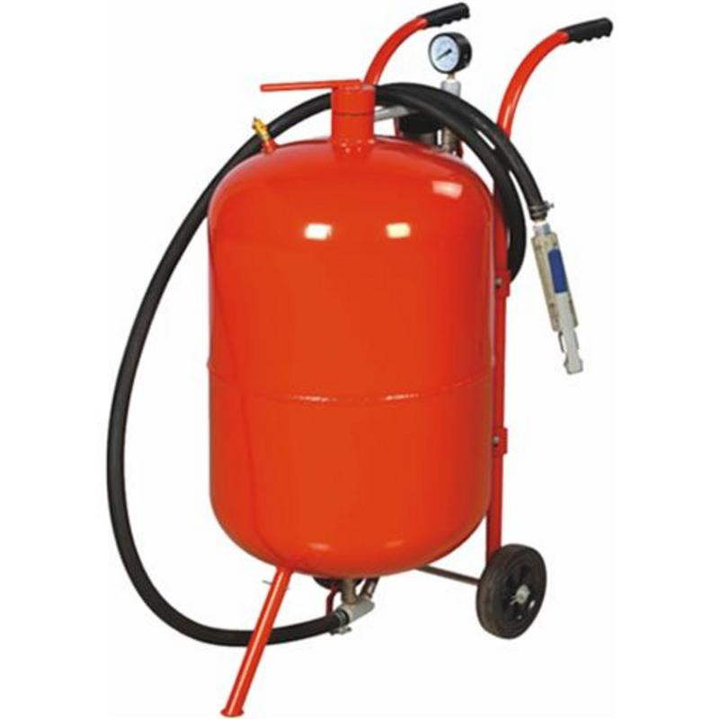 Su gran capacidad de 75 litros reduce la necesidad de recargas frecuentes, permitiéndote abordar proyectos más extensos sin interrupciones. Equipada con ruedas resistentes, esta arenadora garantiza una movilidad sencilla por el taller o lugar de trabajo. Su válvula de bola integrada permite un control preciso del flujo de medios abrasivos, asegurando resultados uniformes y profesionales.