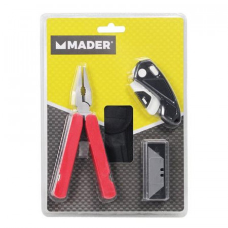Descubre la versatilidad y practicidad del alicate multifunción Mader, una herramienta esencial para cualquier caja de herramientas o para llevar contigo en tus aventuras diarias. Este set compacto y eficiente está diseñado para ofrecer soluciones rápidas y fiables en diversas situaciones, desde pequeñas reparaciones domésticas hasta trabajos de bricolaje o actividades al aire libre.