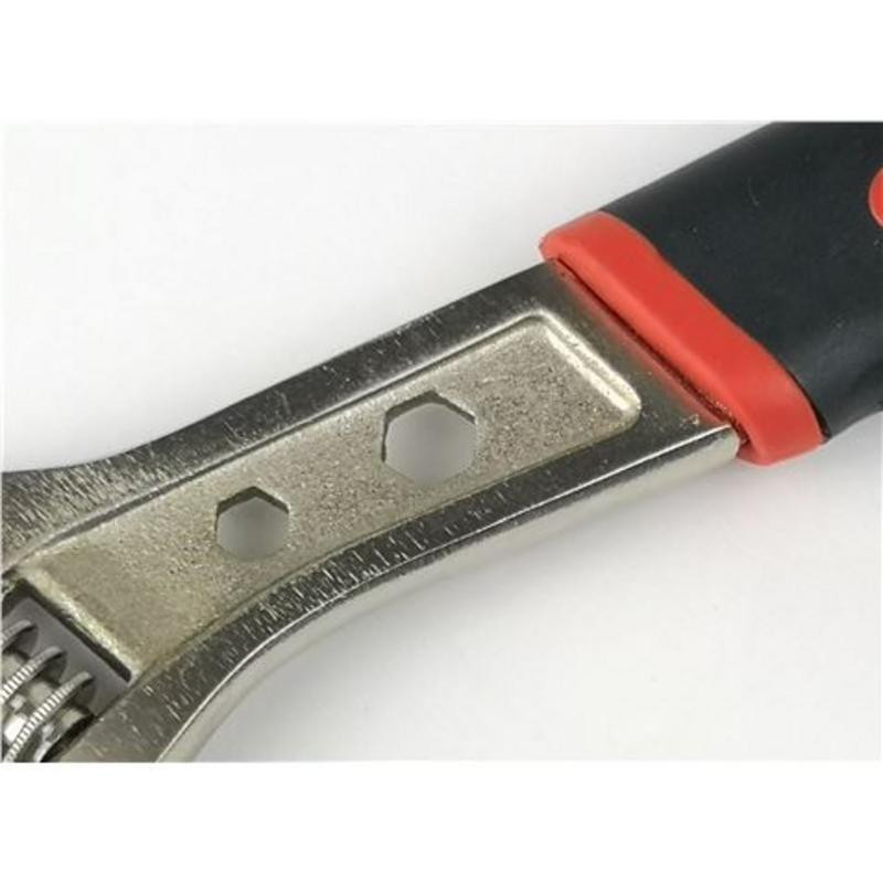 Fabricada con acero Cromo Vanadio de alta resistencia, ofrece una durabilidad excepcional y una gran capacidad para soportar las tensiones del uso continuado. Su mandíbula, de fácil ajuste mediante una ruedecilla de gran versatilidad, se adapta con precisión a tuercas de distintos tamaños, convirtiéndola en la opción preferida por profesionales, especialmente fontaneros, y entusiastas del bricolaje.