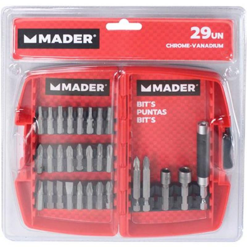 Optimiza tu caja de herramientas con el práctico y robusto juego de vasos y puntas Mader. Este completo kit de 29 piezas está diseñado para ofrecer versatilidad y durabilidad en una amplia gama de tareas de bricolaje, reparación y mantenimiento. Fabricado con acero de alta calidad cromo vanadio (CRV), cada componente garantiza una resistencia superior al desgaste y una larga vida útil, incluso bajo uso intensivo.