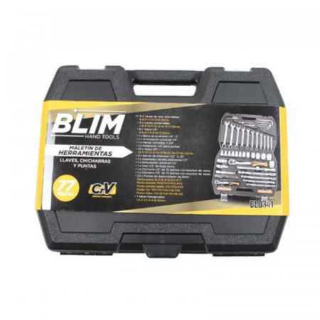 Organizado de forma práctica en un robusto maletín, cada herramienta tiene su lugar, facilitando el acceso y el almacenamiento. Desde llaves de vaso articuladas hasta puntas de destornillador y chicharras de 72 dientes, este conjunto es sinónimo de precisión y comodidad. No importa si necesitas apretar, aflojar o realizar ajustes, el maletín Blim 77 piezas es tu aliado perfecto para un trabajo bien hecho.