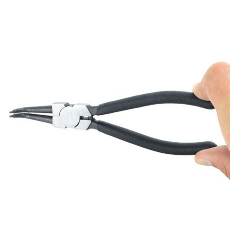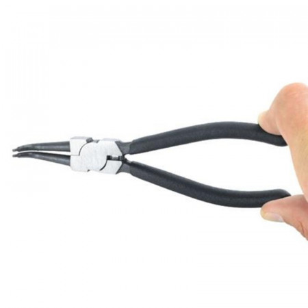 El alicate de grupillas curvo interior de Saurium es una herramienta esencial para cualquier caja de herramientas, diseñada para la manipulación precisa de arandelas elásticas (circlips) internas. Su diseño con bocas curvadas permite un acceso óptimo a los componentes, incluso en espacios confinados, facilitando la instalación y extracción de estas piezas con total seguridad y eficacia.