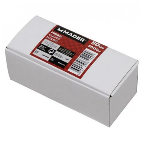 Optimiza tus proyectos de carpintería, construcción y bricolaje con la caja de 5000 unidades de clavos Mader de 50mm. Diseñados para ofrecer una fijación fiable y duradera, estos clavos son un componente esencial en cualquier taller o caja de herramientas.