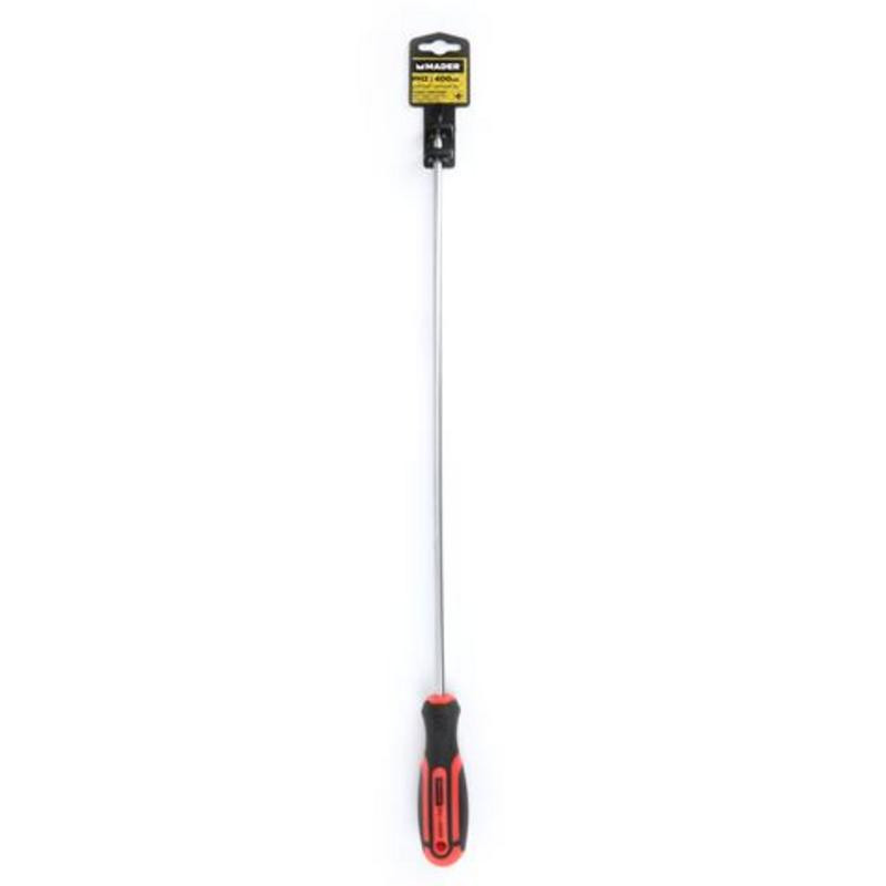 El destornillador Phillips PH2 de Mader, con su impresionante longitud de 400 mm, es la herramienta perfecta para acceder a tornillos en espacios profundos o de difícil alcance. Diseñado para ofrecer una combinación óptima de resistencia y comodidad, este destornillador se convierte en un aliado indispensable tanto para profesionales como para aficionados al bricolaje.
