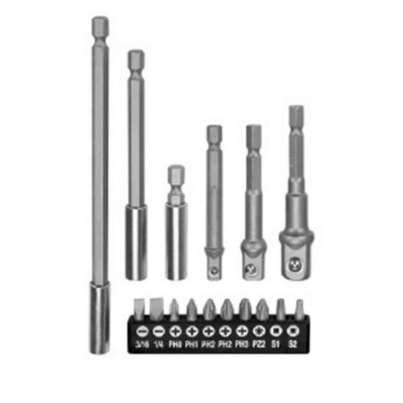 Cada componente ha sido seleccionado para cubrir las necesidades más comunes en trabajos de atornillado y montaje, garantizando un ajuste seguro y una transmisión de fuerza óptima. Las extensiones magnéticas facilitan el trabajo en espacios reducidos y evitan la pérdida de los tornillos, mientras que la variedad de puntas asegura que siempre tendrás la herramienta adecuada a mano.