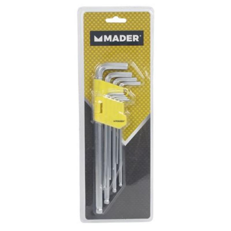 Optimiza tus tareas de bricolaje y mecánica con el completo Juego de Llaves Allen Largas de Bola de 9 Piezas de Mader. Este set ha sido meticulosamente diseñado para ofrecer durabilidad y funcionalidad en cada uso, convirtiéndose en un básico indispensable para profesionales y entusiastas del hogar.