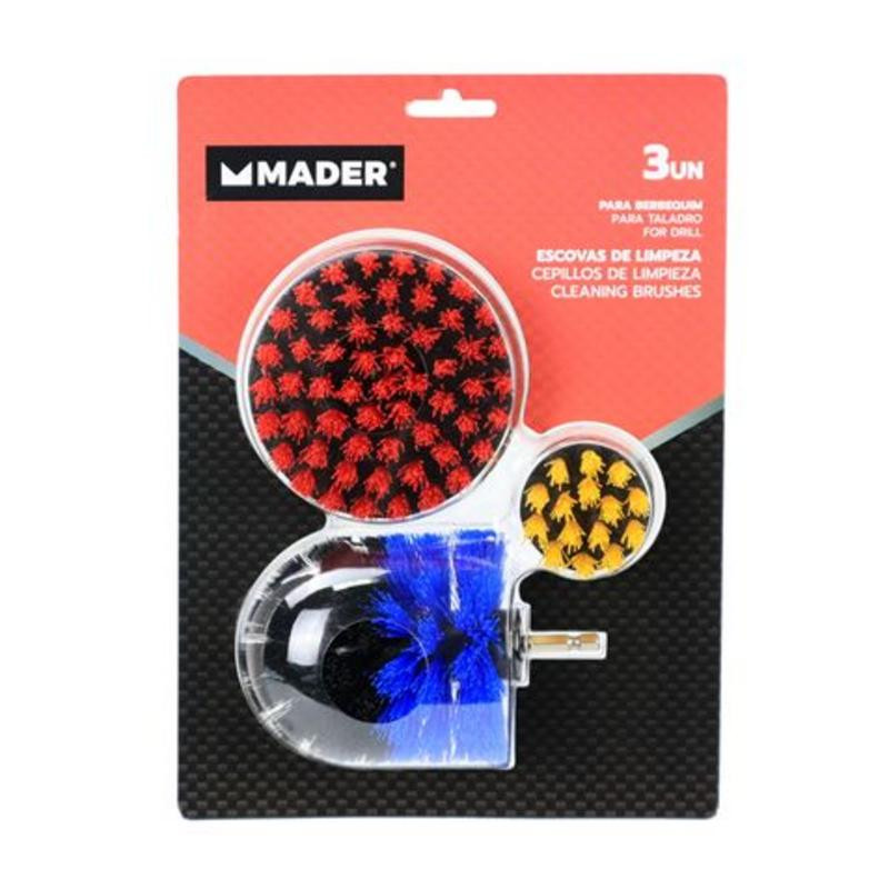Optimiza tus tareas de limpieza con el versátil kit de cepillos para taladro Mader. Este práctico juego incluye tres cepillos de diferentes tamaños y formas, perfectos para abordar una amplia gama de superficies y suciedades. Fabricados con cerdas de nailon de rigidez media, estos cepillos garantizan una limpieza profunda sin riesgo de rayar sus delicadas superficies.