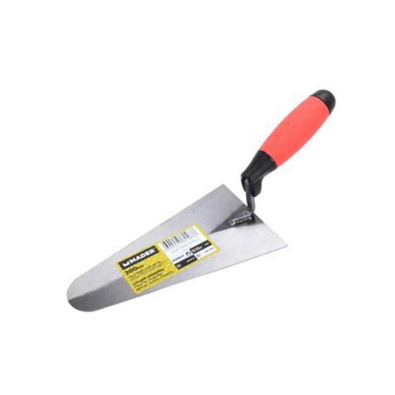La cuchara de albañil Mader está diseñada para profesionales y entusiastas del bricolaje que buscan una herramienta fiable y duradera para sus trabajos de construcción. Su hoja de 200 mm de largo, fabricada en acero de alta calidad, presenta una punta redonda, ideal para trabajar con cemento y mortero, facilitando tanto su preparación como su aplicación.