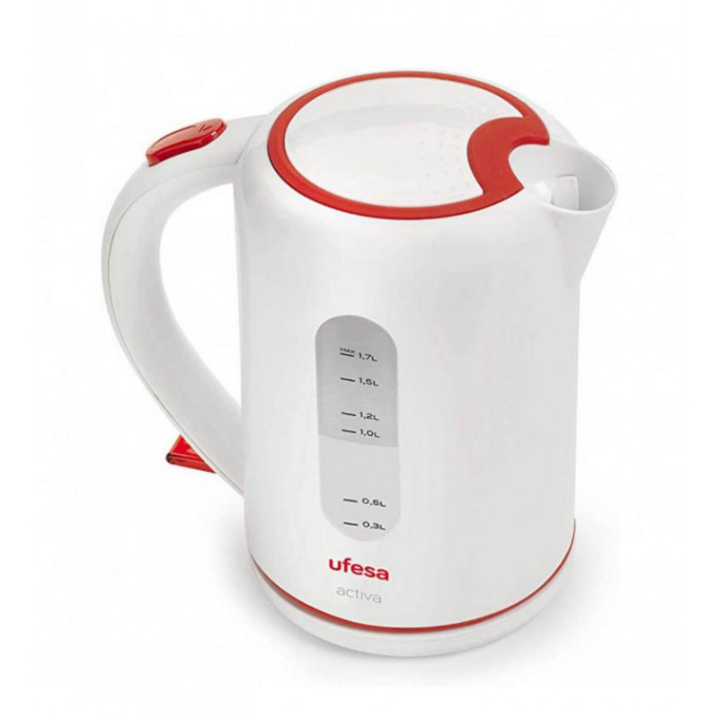 Prepara tus infusiones, cafés instantáneos o tés favoritos de forma rápida y segura con el hervidor Ufesa Activa HA7616. Su potente resistencia de 2200 W garantiza que el agua alcance su punto de ebullición en cuestión de segundos, ideal para tu rutina diaria o para cuando tienes prisa.