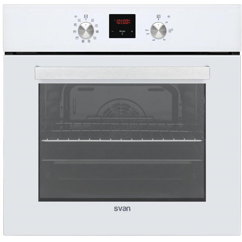 Descubre el horno Svan SVH224B1, una combinación perfecta de funcionalidad y diseño moderno. Este horno eléctrico, con un elegante acabado en cristal blanco, no solo se integra perfectamente en cualquier cocina, sino que también ofrece un amplio espacio de cocción.