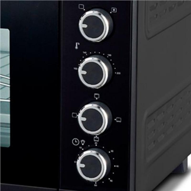 Su función de convección distribuye el calor de manera homogénea, garantizando resultados perfectos desde asados jugosos hasta repostería delicada. El control de temperatura ajustable entre 100º y 230º C te permite adaptar la cocción a cada alimento, mientras que el temporizador de 60 minutos con apagado automático y timbre te proporciona la tranquilidad de que tus comidas no se pasarán de punto. Además, la iluminación interior facilita la supervisión del proceso de cocinado sin necesidad de abrir la puerta.