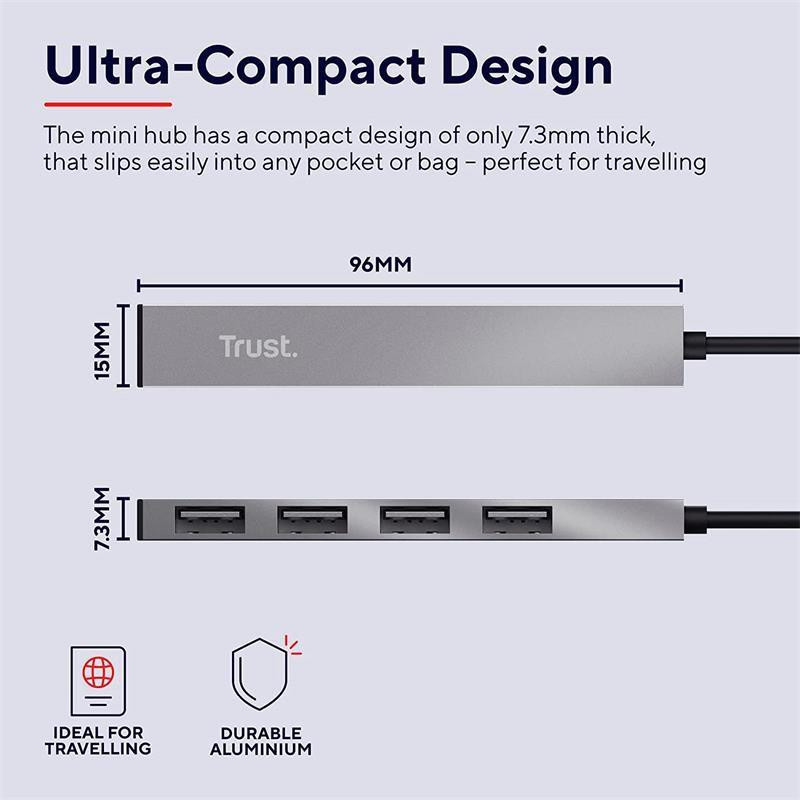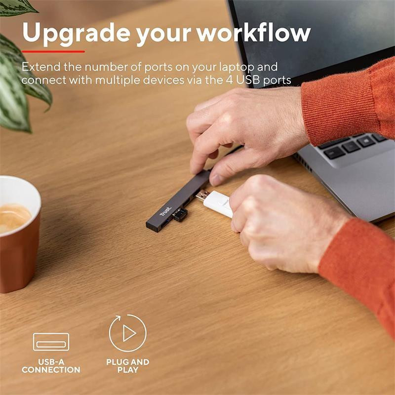 El Trust Halyx Hub USB 2.0 es la solución perfecta para ampliar la conectividad de tu ordenador o portátil. Con este hub, podrás transformar un solo puerto USB en cuatro, permitiéndote conectar múltiples dispositivos simultáneamente. Su diseño compacto y ligero lo convierte en un accesorio ideal para llevar contigo a cualquier lugar.